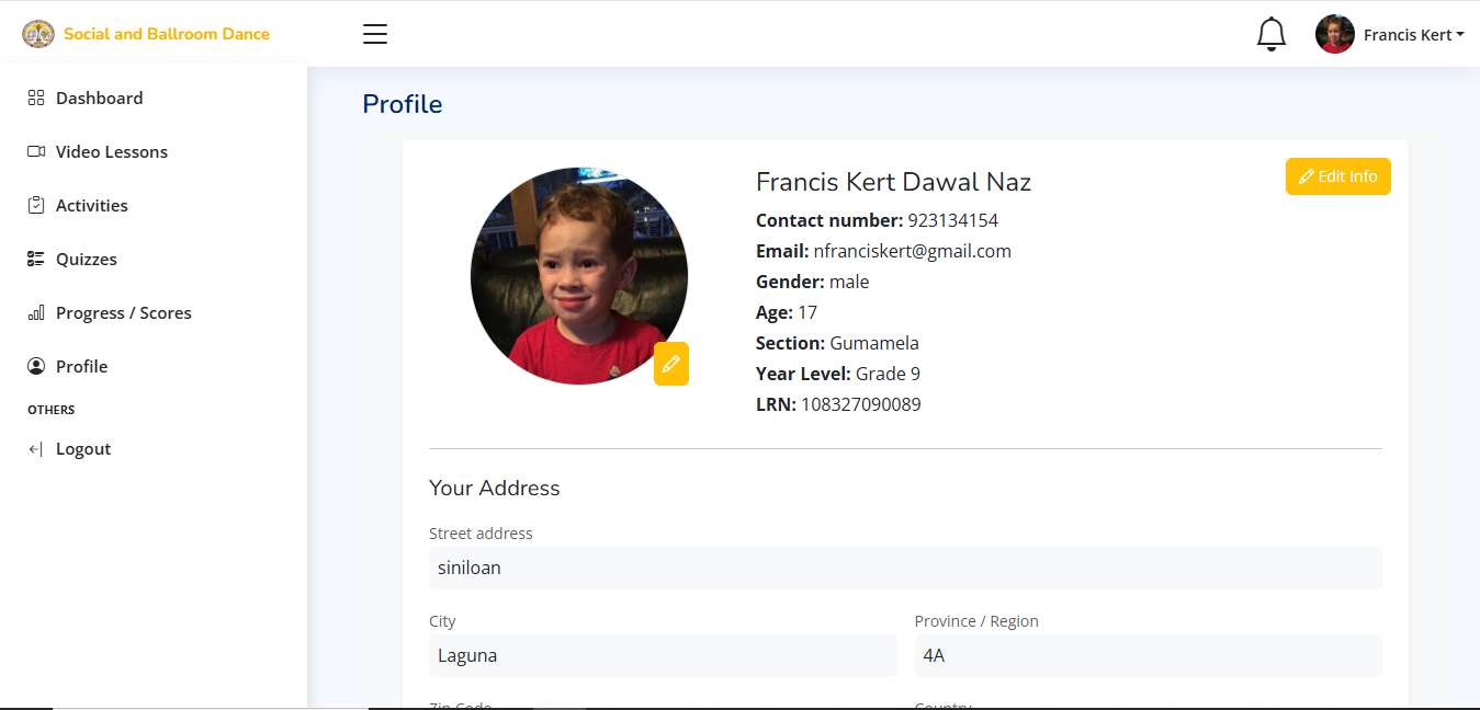 Students can view their profile information and change their personal details.