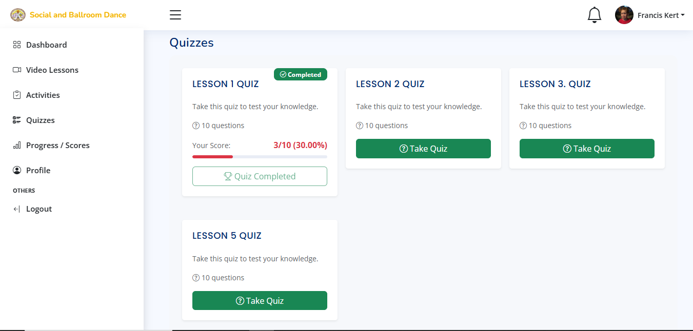 Students can take quizzes to test their knowledge and understanding of the dance techniques and history.
