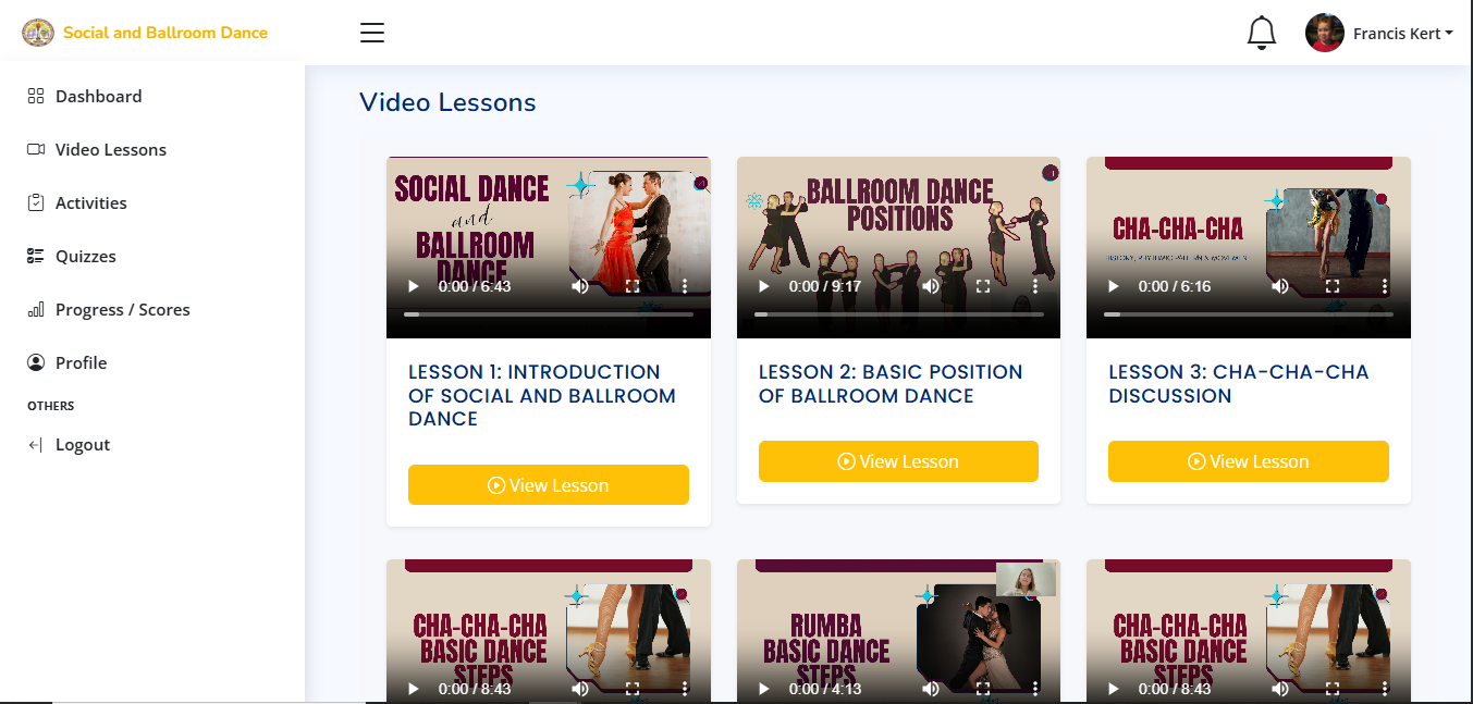 Students can watch structured video lessons to learn dance steps and techniques in a guided format..